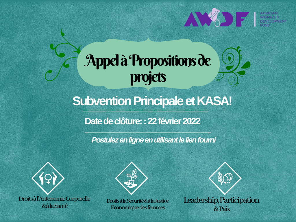 À partir du 25 janvier 2022, l’AWDF acceptera les propositions de projet d’organisations dirigées par des femmes africaines enregistrées et travaillant en Afrique. L’AWDF définit une organisation dirigée par des femmes, une organisation ayant une femme comme directrice exécutive et comme présidente du conseil d’administration et dont la majorité (au moins 70%) de l’ensemble des membres du conseil d’administration et du personnel sont des femmes. L’appel est ouvert jusqu’au 22 février 2022.