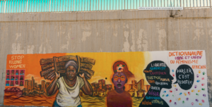 Pour que ces mots continuent de vivre au-delà du moment, une fresque murale féministe a été réalisée dans le quartier de Nord Foire par les artistes Fall’Art et Dashaa.