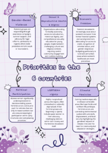 To push forward the agenda on gender justice, feminist and women’s rights activists in the region are focusing on fighting GBV , organizing and advocating for bodily autonomy access to safe abortion menstrual dignity comprehensive sexuality education